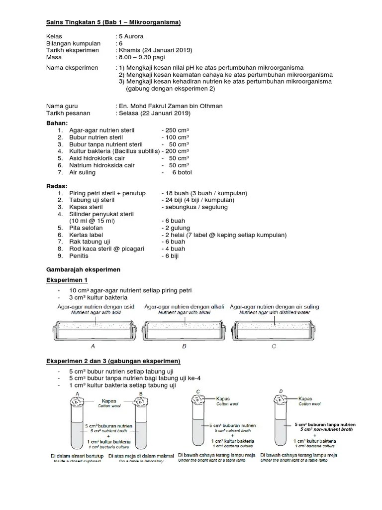 Eksperimen Sains Tingkatan 5 Bab 6 - Order Eksperimen Ting 5 Aurora Mikrob Pdf